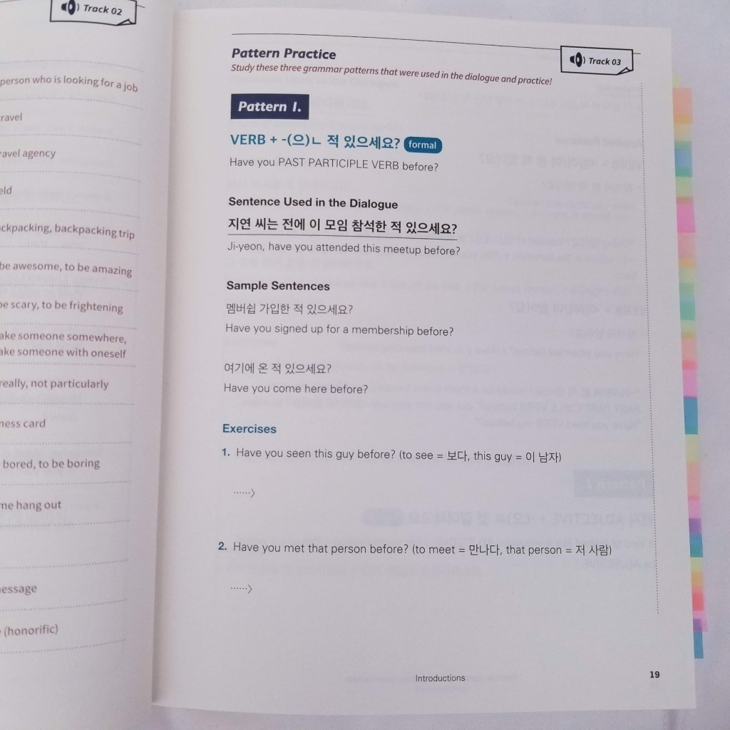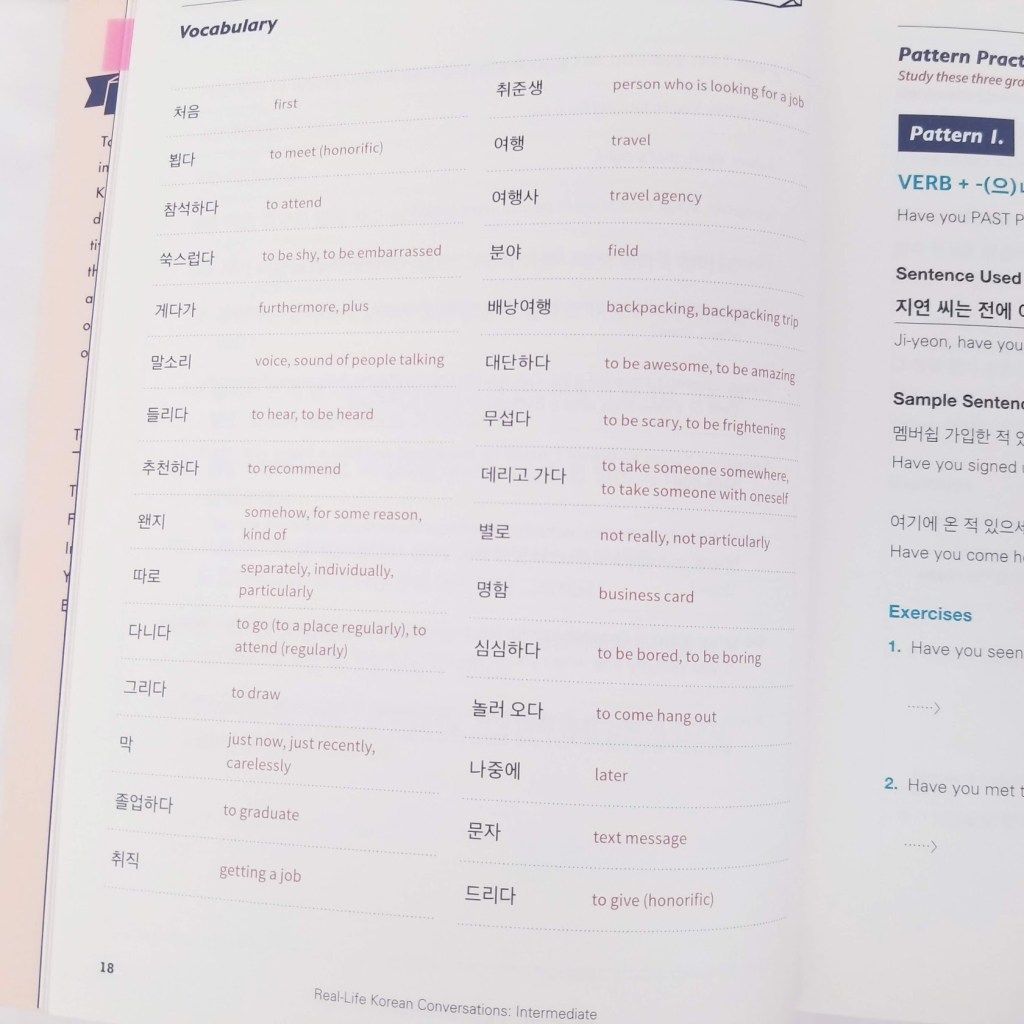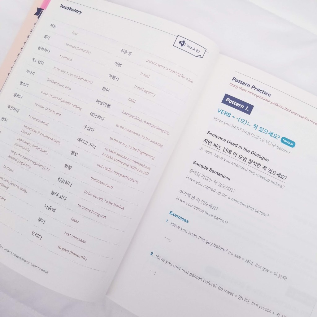 I believe that learning words with context is the key to memorizing vocabulary. So this book is perfect for learning different words used in everyday situations. Also, another good point is that the book comes with audio files from native speakers. I highly recommend this book if you want to increase your vocabulary and conversational skills in Korean.