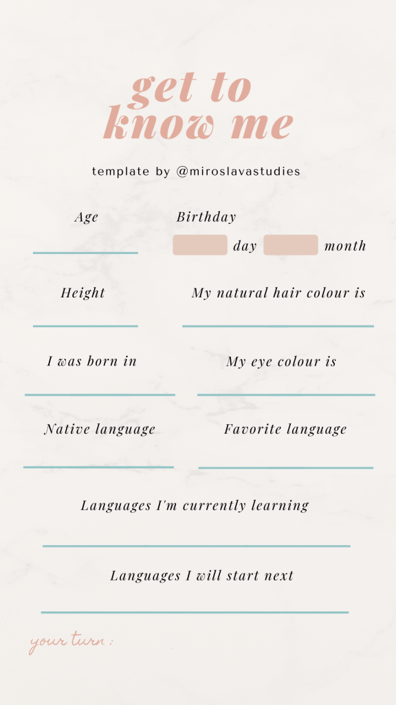 All my templates are free to use. If you share one of my story templates, feel free to tag me @miroslavastudies so I can see your answers. If you have a request just send me a DM on Instagram.